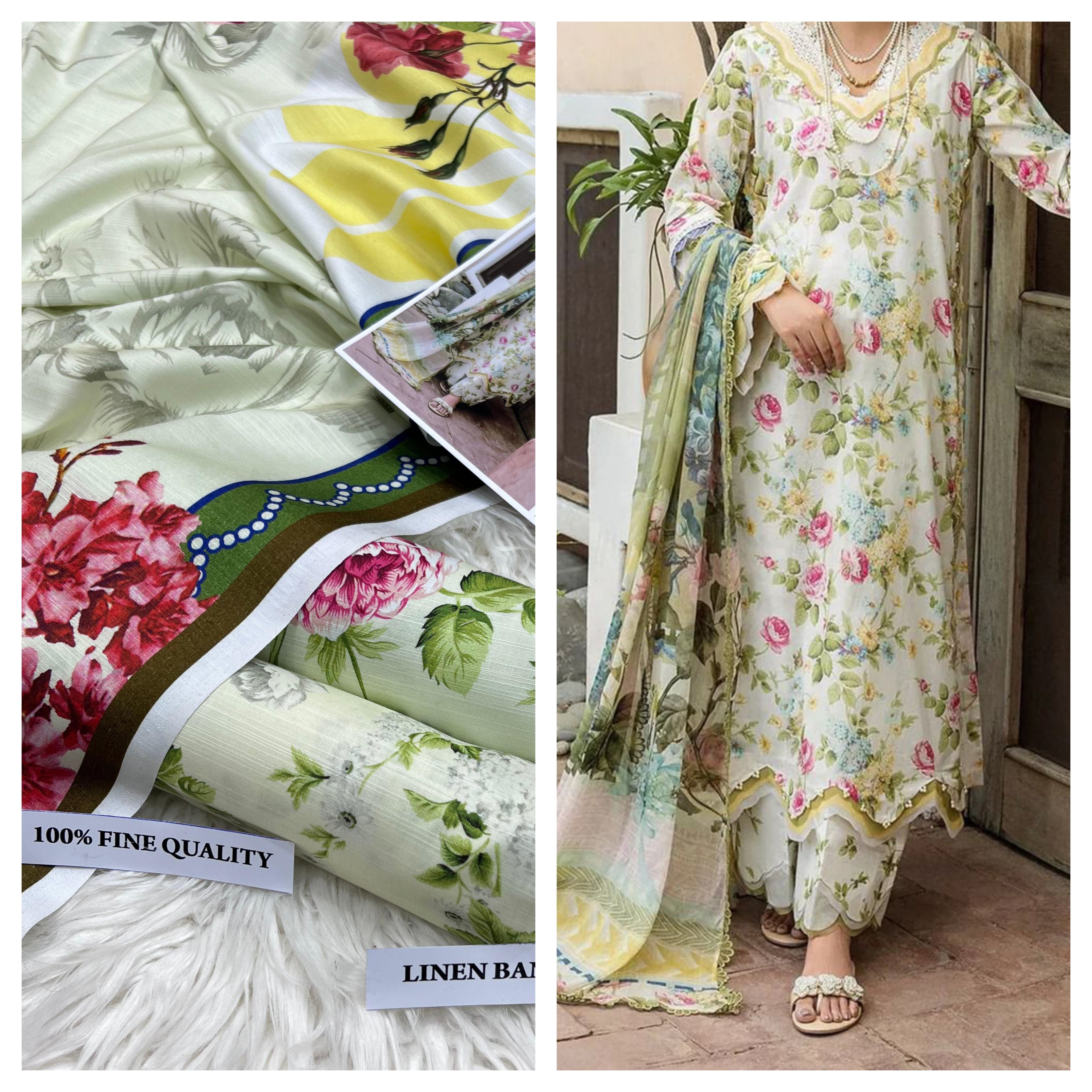 Fine Quality Digital Linen 3-Piece Suit | Digital Printed Shirt, Trouser & Linen Dupatta